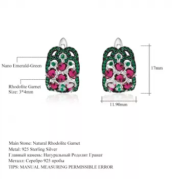 3.0Ct Natural Rhodolite Garnet Gemstone Clip Earrings in 925 Sterling Silver